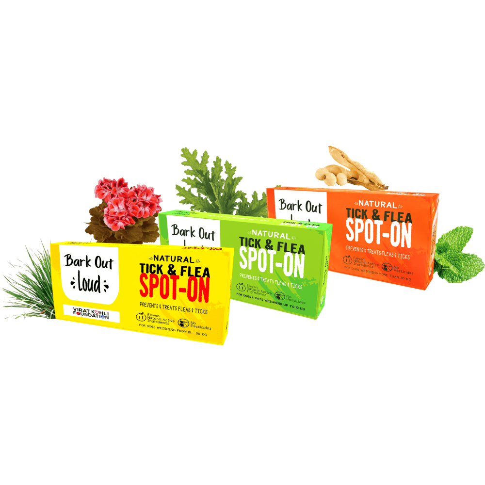 100% NATURAL: Bark Out Loud’s Natural Spot On solutions for dogs & cats is a naturally safe concentrated blend of ingredients. It is enriched with 11 essential oils extracted from plants that develop an especially effective, natural defensive mechanism against pests. Key Features: MONTHLY PREVENTIVE TREATMENT: Use once a month and stress free. Works on flea and tick infested dogs and cats. Lemongrass, Citronella, Peppermint and Rosemary oils work as a flea and tick repellent, repelling even mosquitos and flies when sprayed. GENTLE ON SKIN: Natural way of treatment and prevention of fleas and ticks, with no harmful chemicals. Comes packed with natural oils like Clove, Cedarwood and Soybean oils. Provides healthy skin along with protection from fleas and ticks. ENSURES HEALTHY SKIN & COAT: The ingredients work together to provide effective control of fleas and ticks. All round natural flea treatment, gentle and free of chemical pesticides, ensuring a healthier skin & coat for cats and dogs. DIRECTIONS FOR USE: Choose the weight according to weight of your pet. Twist off the tube. Part the hair between the shoulder blades of your pet. Place the tube tip on the pet’s skin to apply. Apply between shoulder blades and down the spine. DOSAGE : Dogs & Cats (30kg) – 5ml