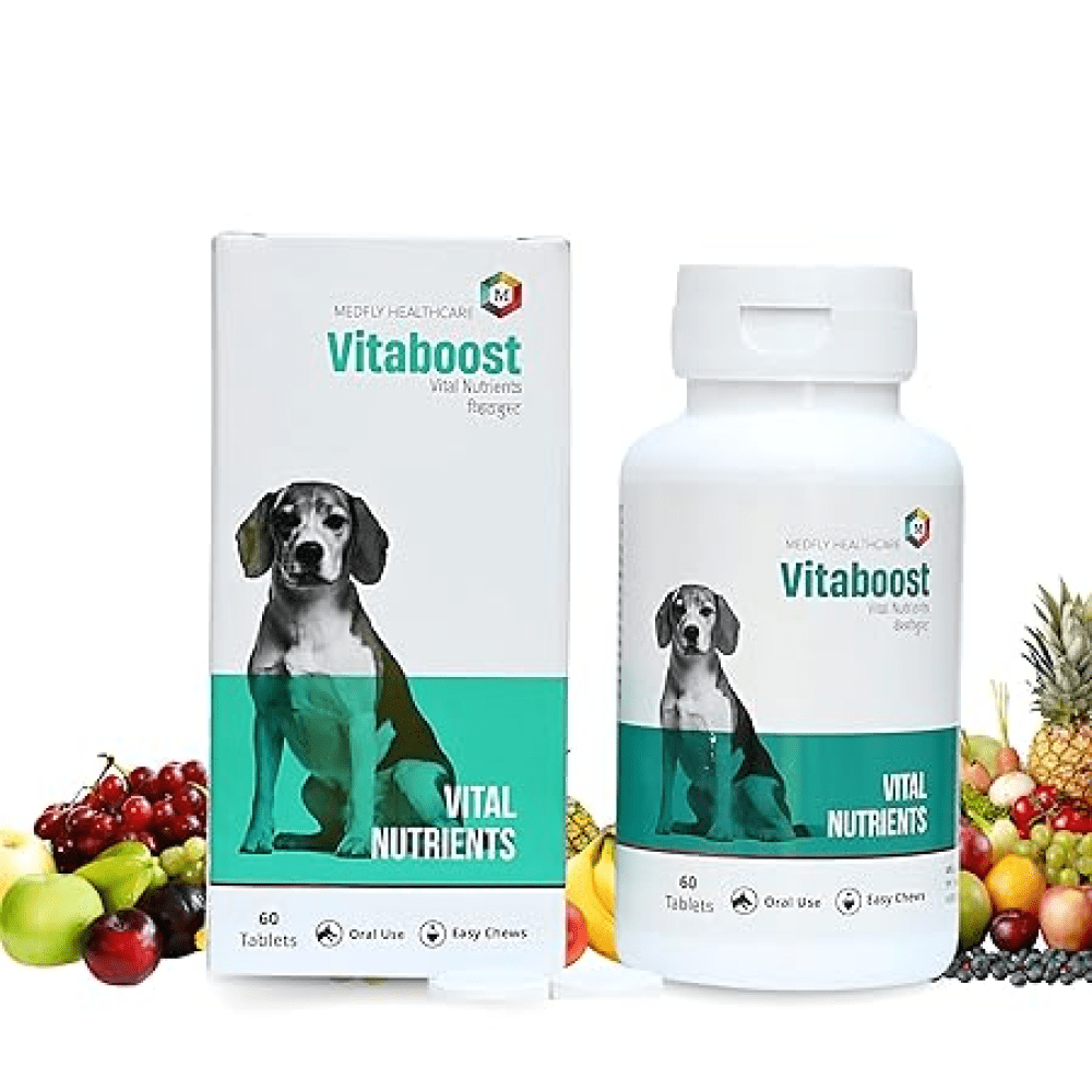 Medfly Healthcare Vitaboost is an essential multivitamin supplement formulated to support the overall health, vitality, and growth of pets. Enriched with vital nutrients, it helps control hair loss, boosts recovery from illness or stress, and improves skin and coat health for a vibrant and shiny appearance. This comprehensive formula provides the nutritional support pets need to stay active, healthy, and thriving.