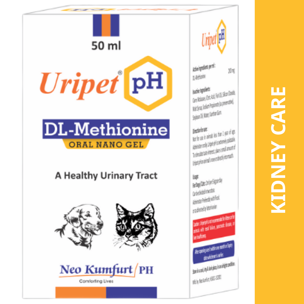 Neo Kumfurt Uripet pH Oral Nano Gel is a specialized formulation designed to support urinary health in dogs and cats. This innovative nano gel works to maintain optimal pH levels in the urinary tract, promoting overall comfort and well-being. With a convenient 50ml packaging, it’s ideal for pet owners seeking a proactive approach to urinary health. Crafted with a focus on high-quality ingredients, Uripet pH Oral Nano Gel offers a gentle yet effective solution for managing urinary tract issues. Its advanced nanotechnology ensures rapid absorption and targeted action, providing your pet with relief and enhanced health. Composition: per ml DL-Methionine 200 mg Class: Renoprotective Uses of Uripet pH Oral Nano Gel: Supports the maintenance of healthy urinary pH levels. Helps manage and prevent urinary tract discomfort. Assists in maintaining overall urinary tract health. Benefits: pH Balance: Helps regulate urinary pH, reducing the risk of urinary tract issues. Comfort: Promotes comfort by addressing minor urinary tract discomfort. Convenience: Easy-to-administer gel format ensures hassle-free application. Key Features: Nano Technology: Advanced formulation for better absorption and efficacy. Safe for Pets: Suitable for both dogs and cats. User-Friendly Packaging: 50ml size for ease of use and storage. Directions for Use: Dosage: Administer 1-2 ml of gel directly into the pet’s mouth or mix with food, once or twice daily, or as directed by your veterinarian. Administration: Use the provided applicator to measure the correct dose. Precautions: For veterinary use only. Consult with a veterinarian before use, especially if your pet has pre-existing health conditions or is on other medications. Keep out of reach of children and pets. Side Effects: Rarely, pets may experience mild gastrointestinal upset. Discontinue use and consult a veterinarian if adverse reactions occur. Disclosure: A licensed vendor partner will deliver this medicine to you. Once the pharmacy accepts your order, the pharmacy details will be shared with you. Acceptance of your order is based on the validity of your doctor’s prescription and the availability of the medicine. Disclaimer: Supertails’ sole intention is to ensure that its consumers get information that is expert-reviewed, accurate, and trustworthy. However, the information contained herein should NOT be used as a substitute for the advice of a qualified physician. The information provided here is for informational purposes only. This may not cover everything about particular health conditions, lab tests, medicines, all possible side effects, drug interactions, warnings, alerts, etc. Please consult your doctor and discuss all your queries related to any disease or medicine. We intend to support, not replace, the doctor-patient relationship.