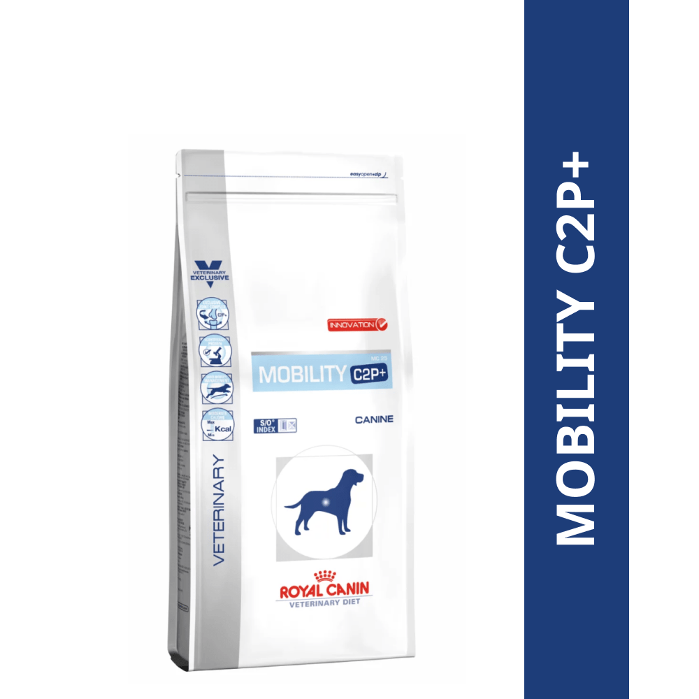 ROYAL CANIN® Mobility C2P+ is a scientifically formulated diet, clinically proven to help support canine joint health. Recommendations: Follow your veterinarian’s nutritional recommendations. Optimal results are expected after 6 to 8 weeks of feeding. Mobility C2P+diet may be continued for the dog’s lifetime. This diet helps maintain mobility, support joints after orthopaedic surgery or trauma. Not recommended in case of: Growth, gestation and lactation. NOTE: This product contains a turmeric extract and staining may occur if the kibble comes in contact with light-coloured surfaces. This diet is complete and balanced and can be fed long-term. A full health check should be performed by a veterinarian every 6 months. Key Features: Mobility Support: Scientifically proven to improve mobility in 88% of dogs when fed Mobility C2P+. Innovative C2P+ Joint Complex: Formulated with a synergistic combination of curcumin, hydrolysed collagen and green tea polyphenols, to help support joint health. Moderate Calorie: Adapted energy content to support joint health by maintaining an ideal body weight.