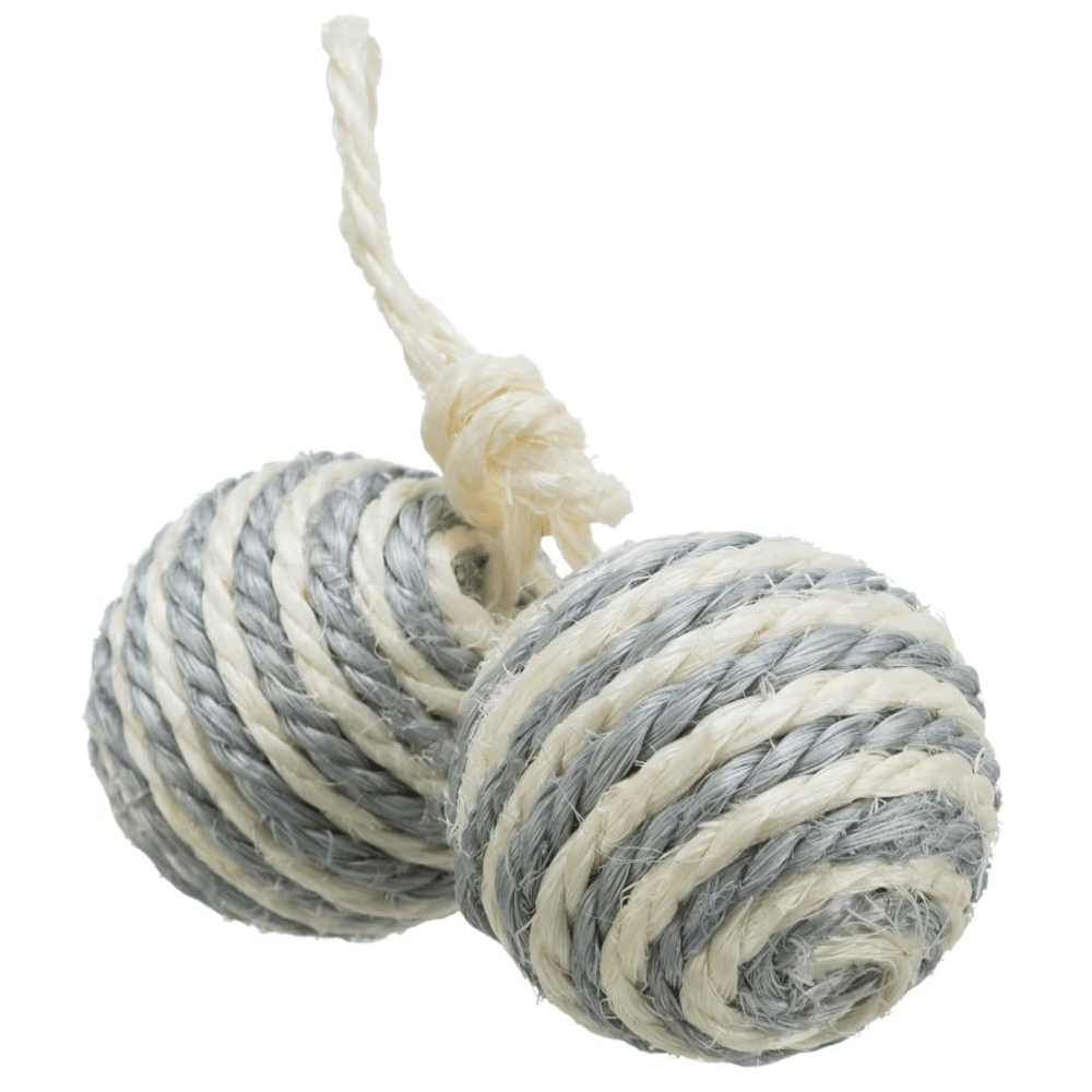 Apt for Frisky Felines: Trixie Two Balls on a Sisal Rope is designed for active and playful cats, providing endless entertainment.