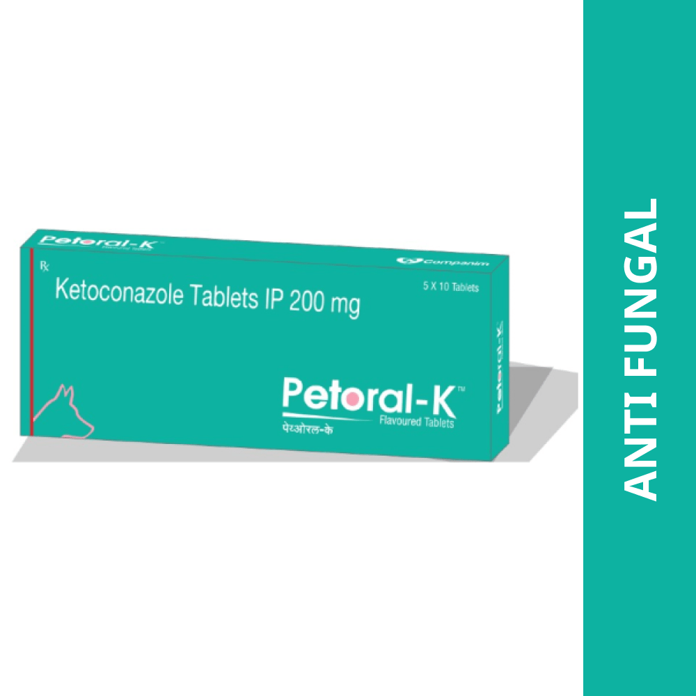 Petoral-K tablet contains ketoconazole for dogs. It is an antifungal which works by inhibiting fungal cell wall. It is recommended only during chronic or severe fungal infections like Malasezzia dermatitis/Otitis, Dermatophytosis in concurrence with topical treatment. It is effective against fungal infections of lymph nodes, skin, nails, respiratory system, bones and other body parts. Composition: KETOCONAZOLE Class: Antifungal Indications/Uses Malassezia dermatitis Otitis Dermatophytosis Ringworm Directions for use: Dosage – As recommended by the veterinarian The medicine can be given directly or mixed with the food. Suitable for Dogs Disclosure: A licensed vendor partner will deliver this medicine to you. Once the pharmacy accepts your order, the details of the pharmacy will be shared with you. Acceptance of your order is based on the validity of your doctor’s prescription and the availability of the medicine. Disclaimer: Supertails’ sole intention is to ensure that its consumers get information that is expert-reviewed, accurate, and trustworthy. However, the information contained herein should NOT be used as a substitute for the advice of a qualified physician. The information provided here is for informational purposes only. This may not cover everything about particular health conditions, lab tests, medicines, all possible side effects, drug interactions, warnings, alerts, etc. Please consult your doctor and discuss all your queries related to any disease or medicine. We intend to support, not replace, the doctor-patient relationship.