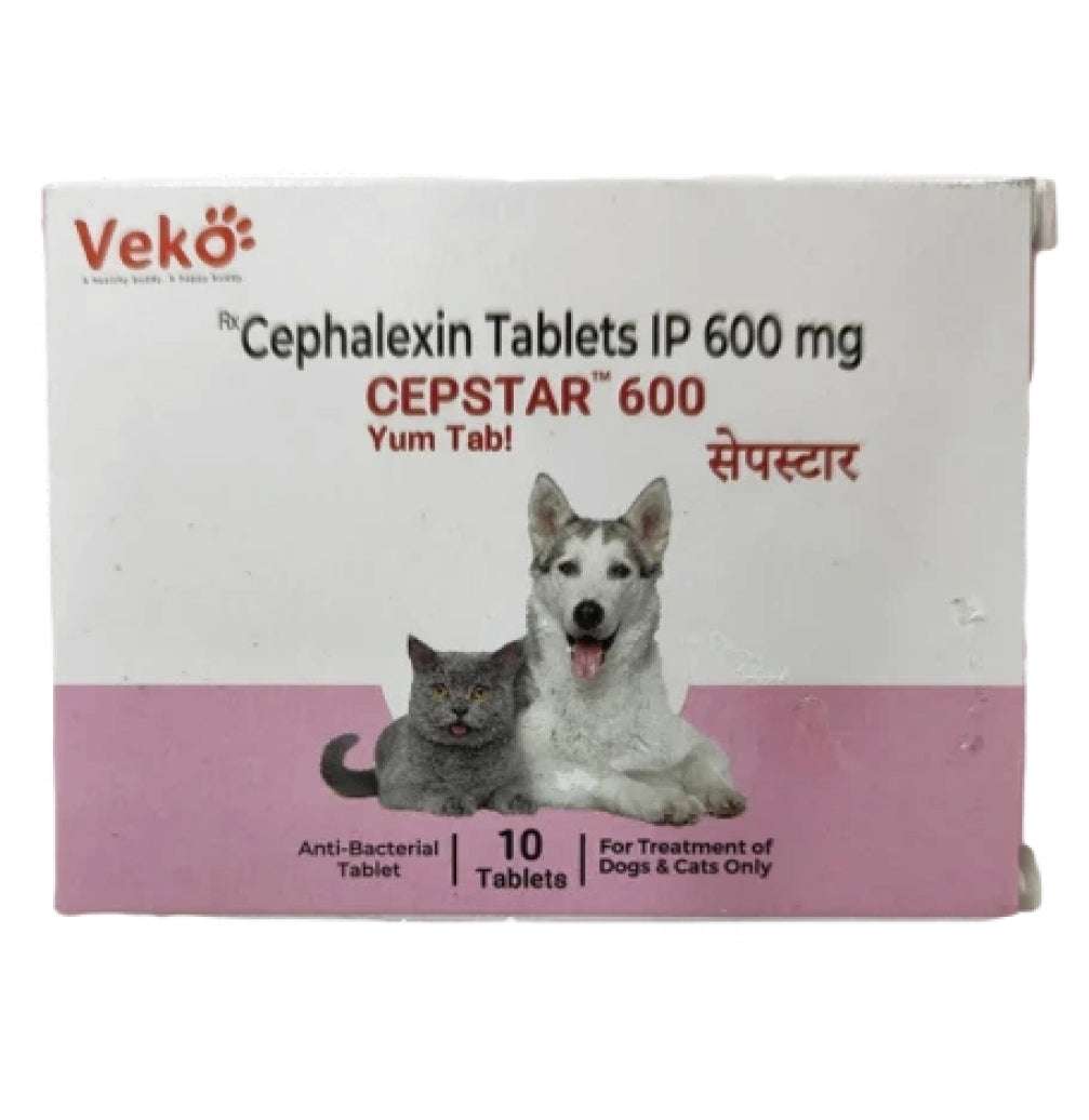 Cepstar Yum Tabs from Veko Care are highly palatable oral antibiotic tablets formulated for the effective treatment of a wide range of bacterial infections in dogs and cats. These broad-spectrum cephalexin tablets are commonly referred to as yum tabs or yummy tabs due to their palatable nature, making administration easier for pets.