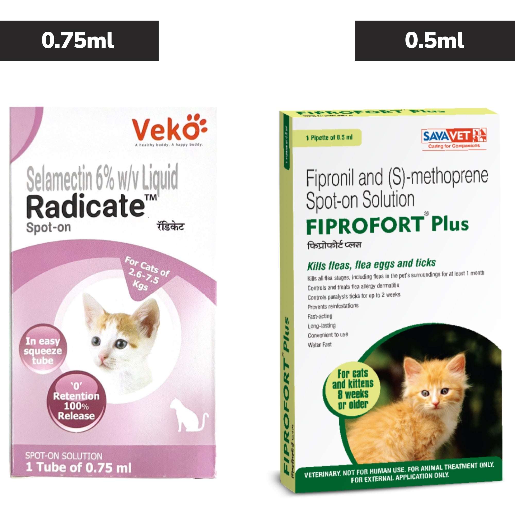 Veko Radicate (Selamectin) 0.75ml and Savavet Fiprofort Plus (Fipronil) Tick & Flea Control Spot On 0.5ml for Cats Combo